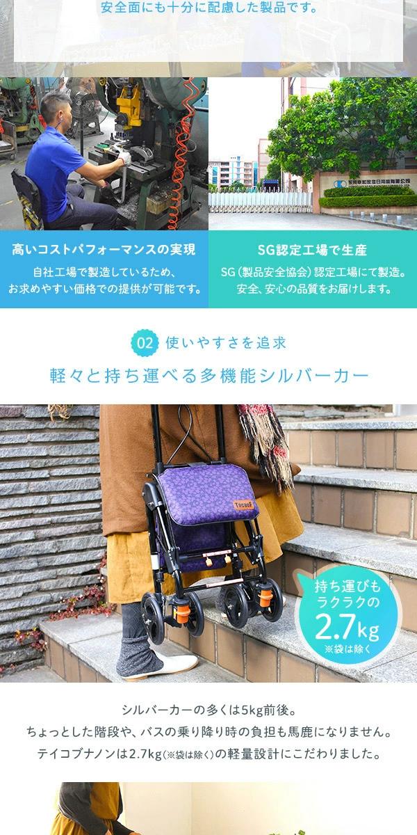 テイコブナノン シルバーカー 歩行器 軽量 コンパクト 折りたたみ キャスター ブレーキ おじいちゃんへ おばあちゃんへ 大切な人へ