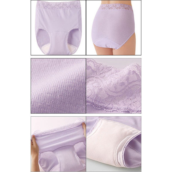 ウエストレース 深ばき安心ショーツ 失禁 吸水 消臭 パープル 介護 レース さらっと 下着 肌着 婦人 女性用 パンツ